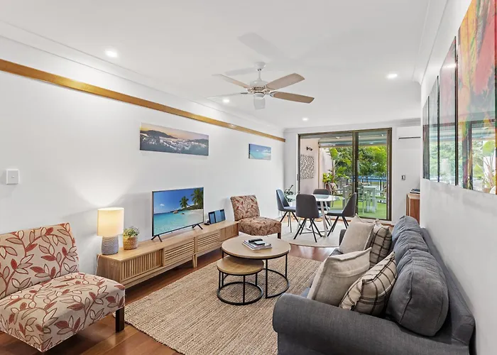 Situado a una distancia de 600 metros de Boathaven Beach, Montipora Unit 3 - In The Heart Of Airlie, Wi-Fi And Netflix Apartamento Airlie Beach ofrece comodidades modernas como Wi-Fi y servicios esenciales como un aparcamiento. Este apartamento está en pleno centro de Airlie Beach, y da acceso rápido al Pioneer Jet Whitsundays, que está a 1 km.